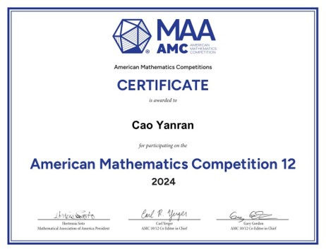 I Reviewed algebra, geometry, number theory, calculus, and other fields; practiced the exam questions over the years. I participated AMC12 , I scored 132 out of 150 and qualified for AIME. The cut off line for the honor roll of distinction was 139.5-B (top 1%), and the cutoff line for distinction (top 5%) was 114. I participated in the IMC and SMC competitions of UKMT, I got the golden certificate and silver certificate.